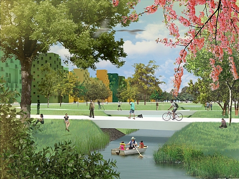 Artist impression van Hyde Park in Hoofddorp © MVRDV